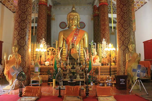 The weather was unbearably hot (again in SE Asia), so we took a break and visited the Talat Khua Din - which was an open air market, hoping to cool off in the shade, but it was even hotter walking through the shaded stalls! Heading back out, we set out to see Patuxai, which is a gate/landmark/arc, also known as the Asian "Arc de Triomphe." It is dedicated to those who fought the battle to gain independence from France, and provides great aerial views of the entire city.